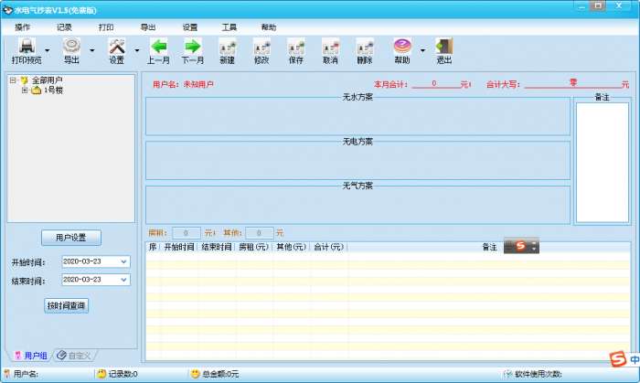 普通水电气方案可以和供排水方案、平和电方案进行选择行记录,但前提是必须在用户中设定相应的方案,程序会根据用户的方案进行自动选择方案填写记录和计算。
