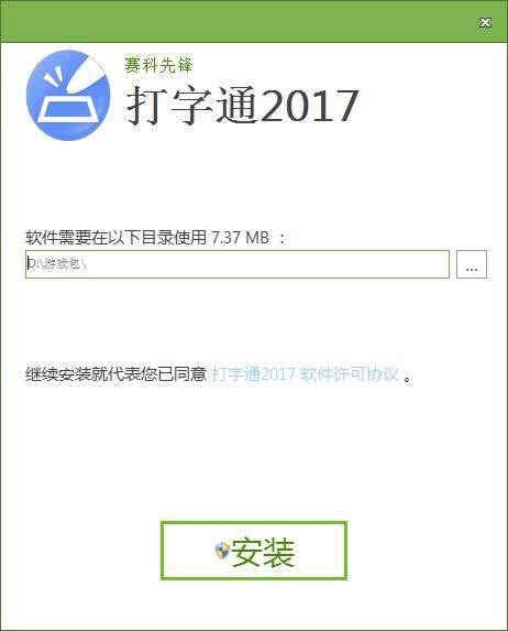 3.双击exe程序,进入赛科先锋打字通软件安装界面,选择安装位置,点击安装