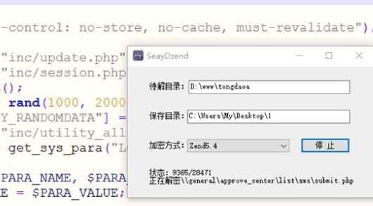 SeayDzend需要键入正确的待解目录和保存目录路径,Zend加密方式(Zend5.2NM/RM-Zend5.4)。