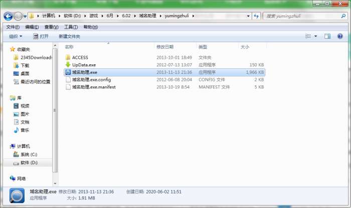 2.解压域名助理软件,运行“EXE.文件”