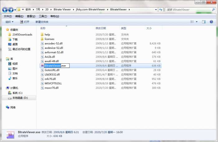 2.解压Bitrate Viewer软件,运行“EXE.文件”