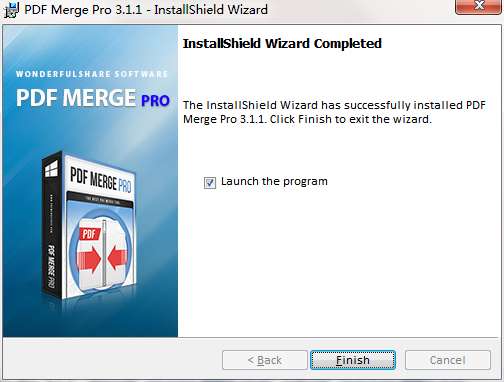 6.点击完成,Wonderfulshare PDF Merge软件安装成功