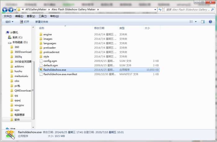 1、下载文件找到"flashslideshow.exe"双击运行;