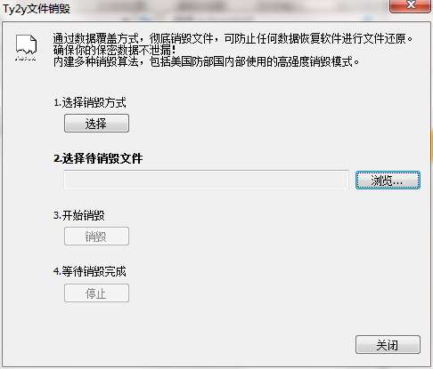 特别需要说明的是,Ty2y文件销毁使用了美国国防部的机密信息销毁标准,最高可进行35次加密覆盖!可保证你销毁的文件不会被任何人获取。