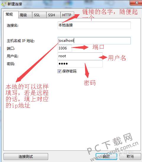 2、打开新建连接窗口,需要您输入链接名、ip地址、端口、用户名、密码,然后点击左下角的 链接测试 可以看到显示 链接成功 的弹出框,然后点击 确定 就可以链接上了。