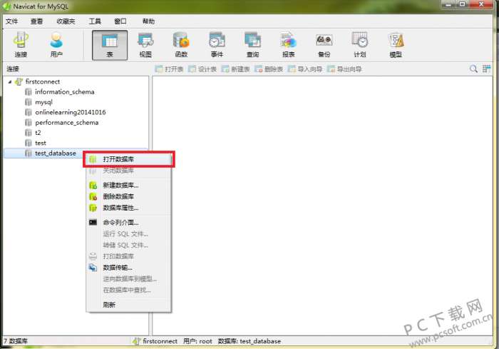 6、选中您新建好的数据库,点击鼠标右键,在弹出的选项中点击【打开数据库】选项。