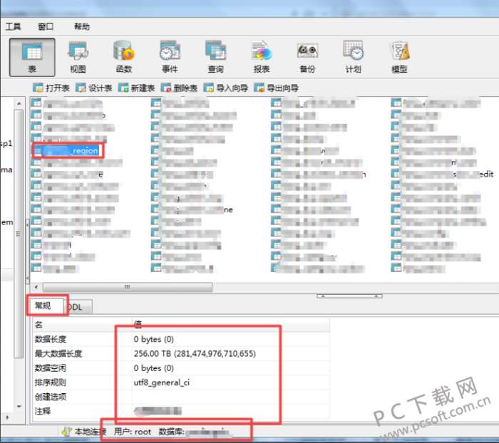 1、连接好数据库后,点击右侧的某一张表,在下面的 常规 中就可以看到这张表的基本信息了。