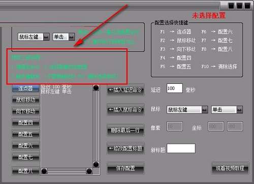 对相关的配置信息进行输入,包括连点器、鼠标移动、配置的相关信息、删除最后一行等;