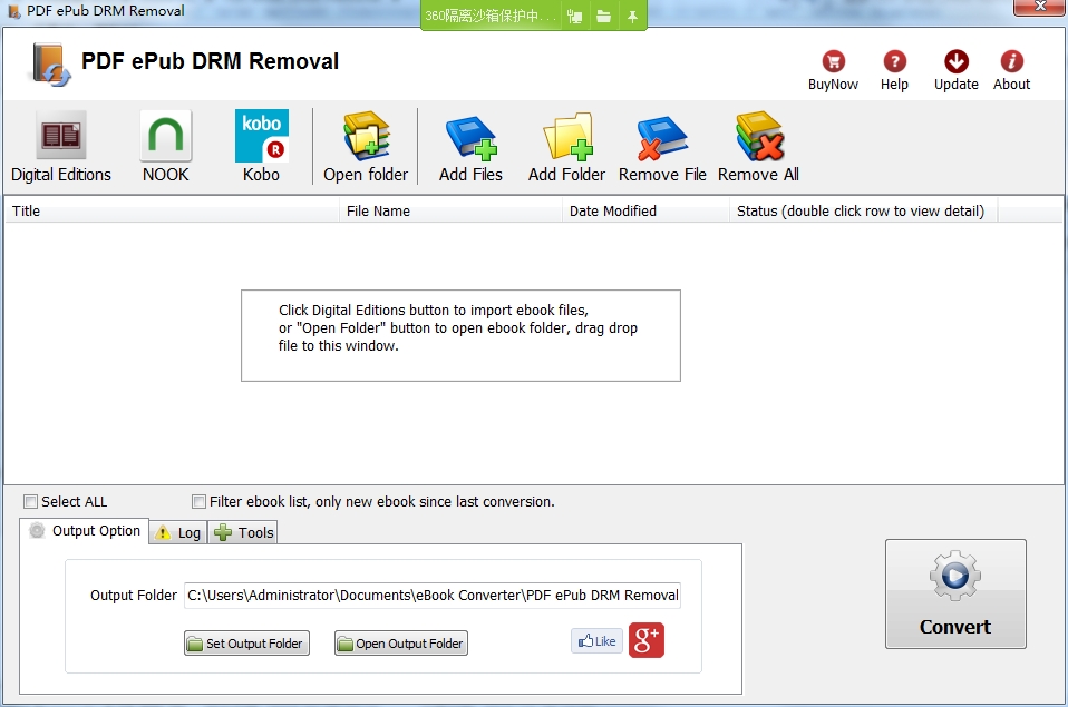 PDF ePub DRM删除快速和容易删除电子书熟练的DRM保护PDF ePub文件与1点击。用户可以在ipad、NOOK、Sony Reader或其他设备上查看PDF ePub电子书,不受限制,还可以打印电子版电子书。这是非常容易的用户,只需1点击解密epub电子书。