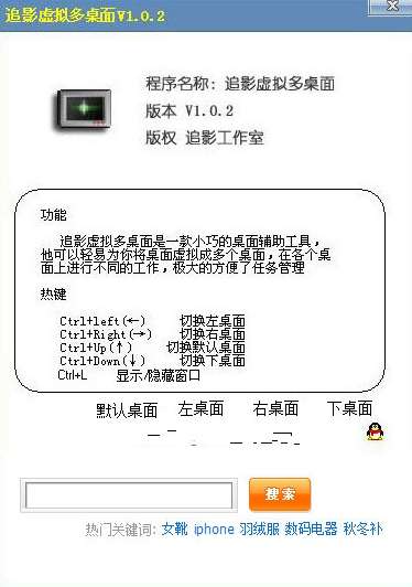 追影虚似多桌面是一款虚拟桌面的实用工具,此软件能够虚似出好几个桌面上,能够让一个电脑上有好几个桌面上,每一个桌面上能够有不一样的每日任务,可在每一个桌面上当中运作不一样的程序流程,便于管理,追影虚似多桌面转换起显示屏只必须按住快捷键就可以迅速转换,追影虚似多桌面针对每日任务的管理方法便捷极可,是一个非常好的助手。