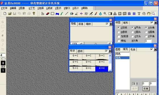 EX9000不仅能记录花稿本身,而且能完整记录与该幅花稿有关的全部信息,如回头、网形、网目、浆料百分比、花样类别等等。这样实际不就就是为用户提供了一个有关工艺、技术和管理信息的数据库,有很强的实用性。