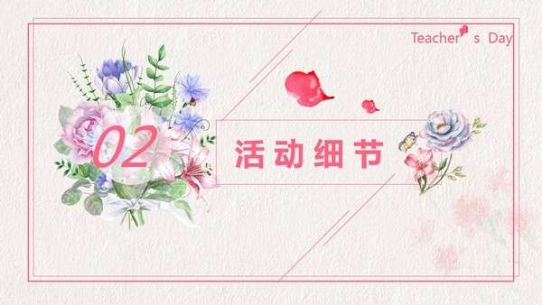 这是一套水彩花卉与老师背景的教师节活动策划PPT模板,共19页;