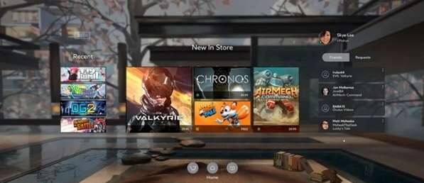 6、需要在头显内启动游戏,左手菜单键打开VD菜单,左下角开启SteamVR或在Games里开启Oculus资源库里的游戏,不可在电脑界面中开启游戏