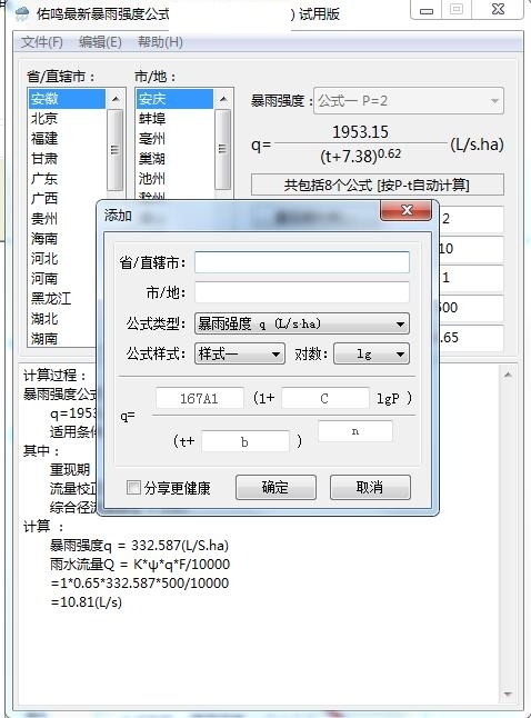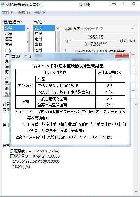 1、佑鸣最新暴雨强度公式软件是收费软件,但是价格便宜