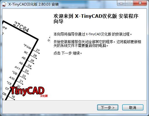 1、下载解压文件,找到“X-TinyCAD 汉化版.exe”双击安装