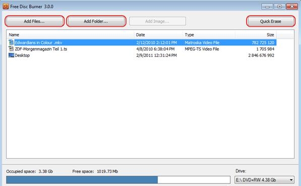 Free Disc Burner官方版是款可以支持CD以及DVD等各种光盘打造的刻录工具。Free Disc Burner电脑版可将任何文件、文件夹(数据)刻录到任何的光盘。可以将文件写到已经使用过的光盘,并擦出光盘里的资料,支持蓝光。Free Disc Burner适用于任何新手用户使用。目前Free Disc Burner完全免费,还支持刻录任何类型的数据到CD,DVD和蓝光光碟,支持的光存储介质有以下几种:BD-R/BD-RE,DVD-R双层,DVD-R双层和DVD+R等。