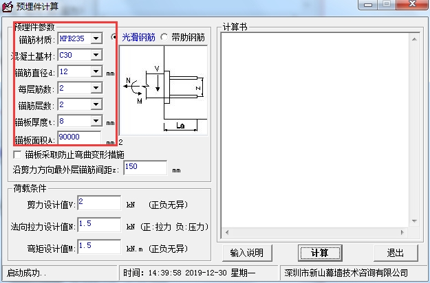 软件在操作上非常的简单,用户仅需简单输入预埋件参数图荷载条件即可快速实现计算。