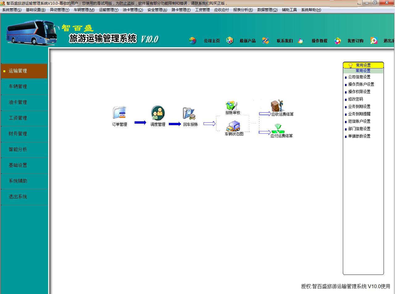 智百盛旅游运输管理系统官方版是一款十分优秀的旅游运输管理系统,智百盛旅游运输管理系统官方版界面简洁,功能强大,支持多台电脑连网同时管理操作,智百盛旅游运输管理系统最新版被广泛应用于旅游、客运运输公司。可以帮助各公司更好的进行运输管理。