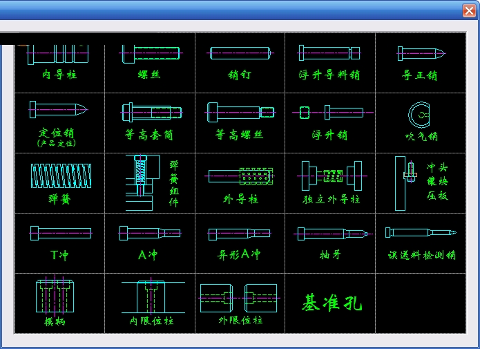 "标准件绘制"用于绘制各种标准件,如内/外导柱、螺丝、弹簧等等,以及各标准件的零件图。