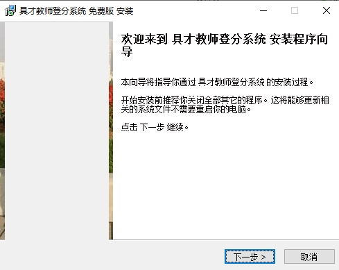 1、在PC下载网下载具才教师登分系统最新版安装包,然后进行解压,双击EXE程序,点击下一步