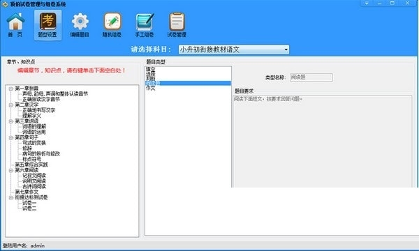 4.对题库可以按科目、章节、知识点、难易程度分门别类的进行管理