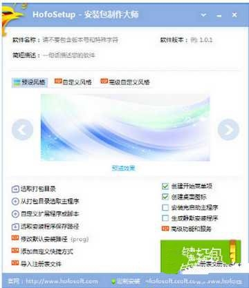 HofoSetup安装包制作大师是一款功能强大的安装程序制作工具,您只需要填写相关信息,它就可以将您的软件直接打包,然后生成一个精美的安装程序,非常的简单,而且打包后安装速度也非常的快,非常适合软件开发人员使用。需要的朋友欢迎下载!