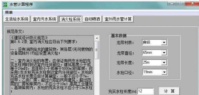 3、消火栓计算采用的为经验公式,计算很大或很小的水柱长度都不合适