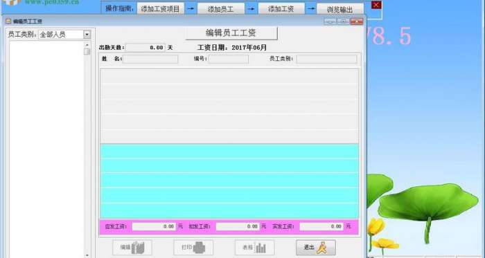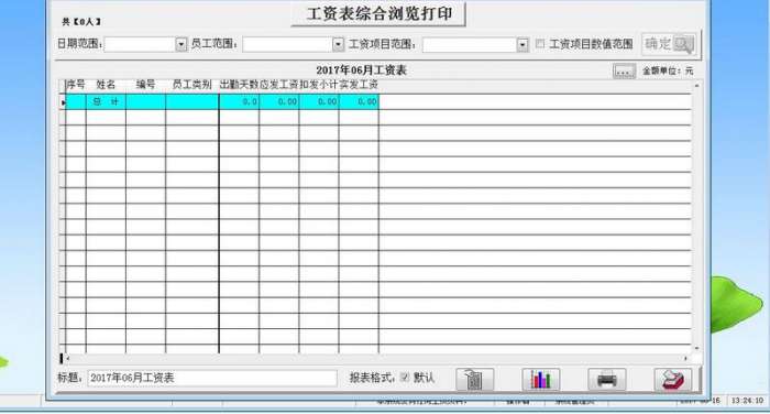 3、设计完整:本工资核算通用程序,对工资的核算、发放、分类、浏览和输出等功能进行了完整全面的设置,并对员工的工资情况进行了系统的分析,非常方便、实用。