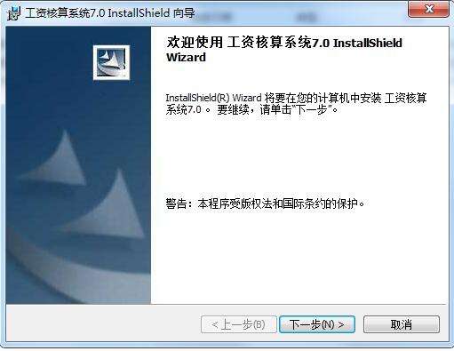 1、下载文件找到"工资核算系统7.0.exe"双击运行,进入软件安装向导界面;