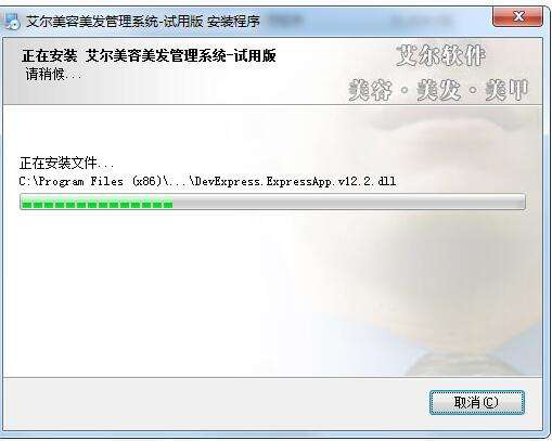 8、艾尔美容美发管理软件正在快速安装中,请耐心等待片刻。