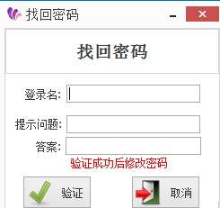 2、如果用户忘记密码,可以点击左侧“找回密码”,然后输入登录名,提示问题,答案如果输入正确则可以重新设置密码。