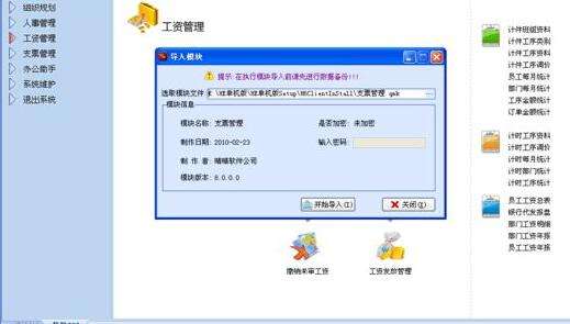 5、在工资管理的项目中,您可以引入一个已经设计结束的模块,这样可以 加速设计的效率