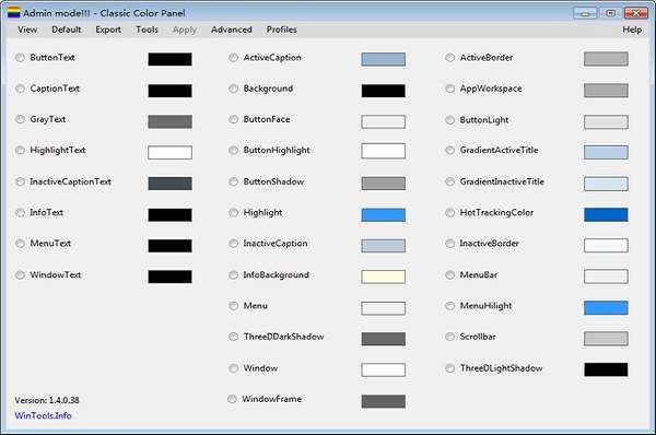 Classic Color Panel是一款系统窗口颜色修改工具,可以用来设置系统主题、按钮、窗口、菜单、信息栏、背景、高亮、标题等多个项目的颜色,只要是电脑可以识别的颜色,都可以设置,而且软件还会把你原来的方案保存下来,便于您的恢复。
