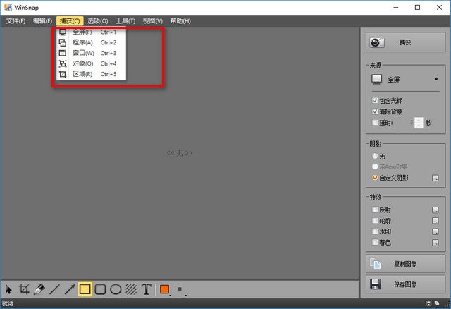 WinSnap设置了正片、负片和边框等阴影效果。