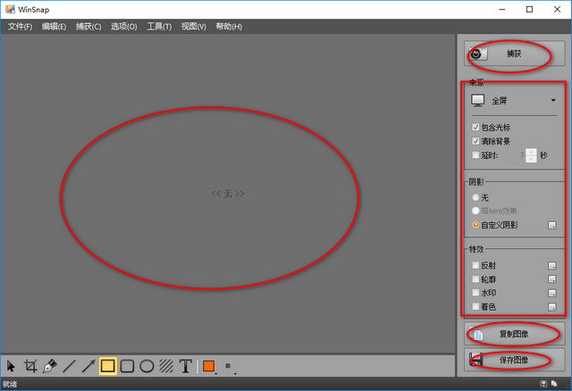 WinSnap提供了多样的图像效果处理,如:颜色、阴影、轮廓、水印等。这些设置可以直接在软件运行界面中进行选择,而且在设置后,如无变化,则每次捕捉屏幕图像时都将采用这个设置。