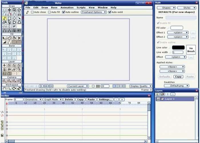 MOHO 是一个类似于 FLASH 的矢量动画工具,操作界面简洁,动画控制功能强大。我们在FLASH中作动画,每层只能有一个元件活动,而在 moho 里,就没有这样的局限。而且,因为它有着极为专业的“骨骼”功能,为我们提供了制作复杂人物动画的可能。 这样我们就不必在FLASH中为那些众多的元件分层而烦恼了。