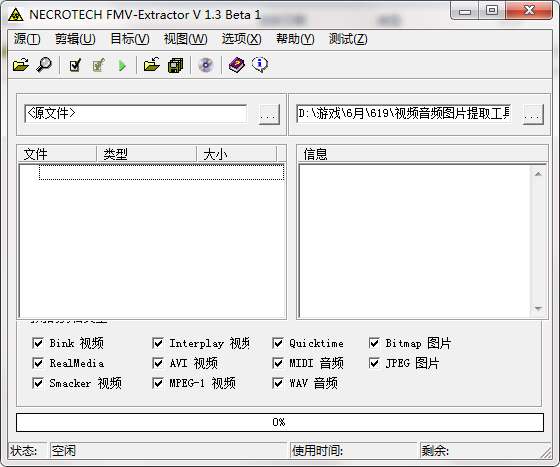 现在大多数游戏软件的视频、音频及图片都打包成了一个大文件,FMV-Extractor 就可以从这些文件中分离出可以单独播放的文件。能够分析有avi、wav、bink、jpg、bmp、realmedia...等等格式。