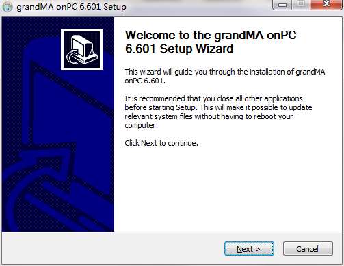3.双击打开,进入grandMA onPC软件界面,点击下一步