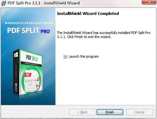 6.点击完成,Wonderfulshare PDF Split软件安装成功