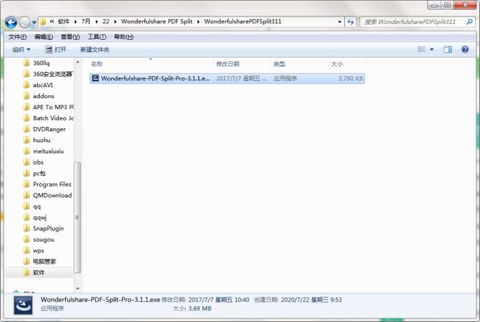 2.解压Wonderfulshare PDF Split软件,运行“EXE.文件”