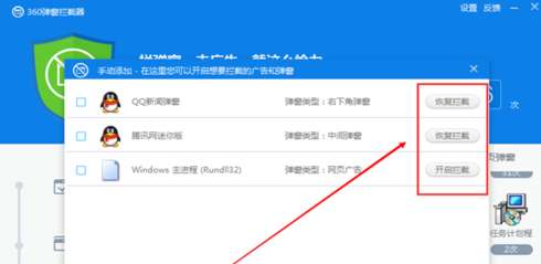 6:添加要拦截的广告后,返回360弹窗拦截器里可以看到刚刚添加拦截广告的软件。