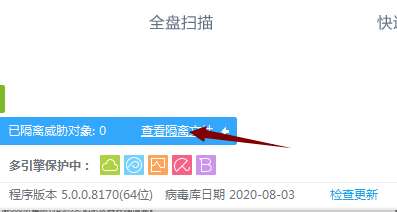 2、点击左则滑动条,滑动出已隔离威胁对象,点击查看隔离文件。