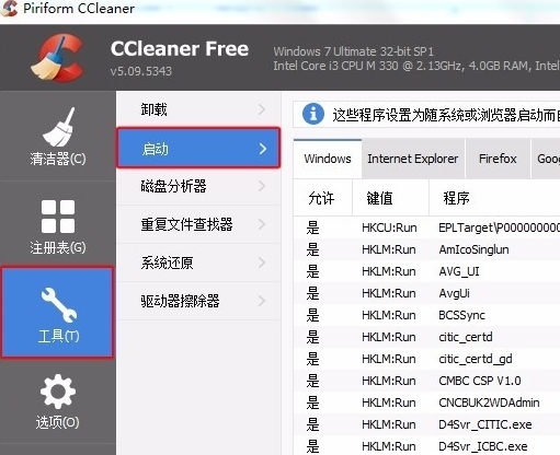 如何利用CCleaner破解版软件禁止随系统启动的程序