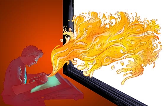 重新设计的属性列、弹出式功能表和笔刷与工具面板可将最举足轻重的控制项整合到股掌之间,整合式材料库面板可为您节省珍贵的绘画像素。