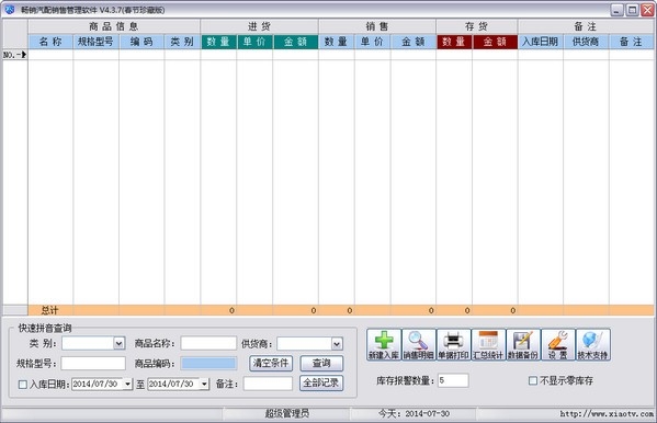 软件主窗体为入库明细,也可以查看商品销售和库存,通过汇总统计可以总体查询。