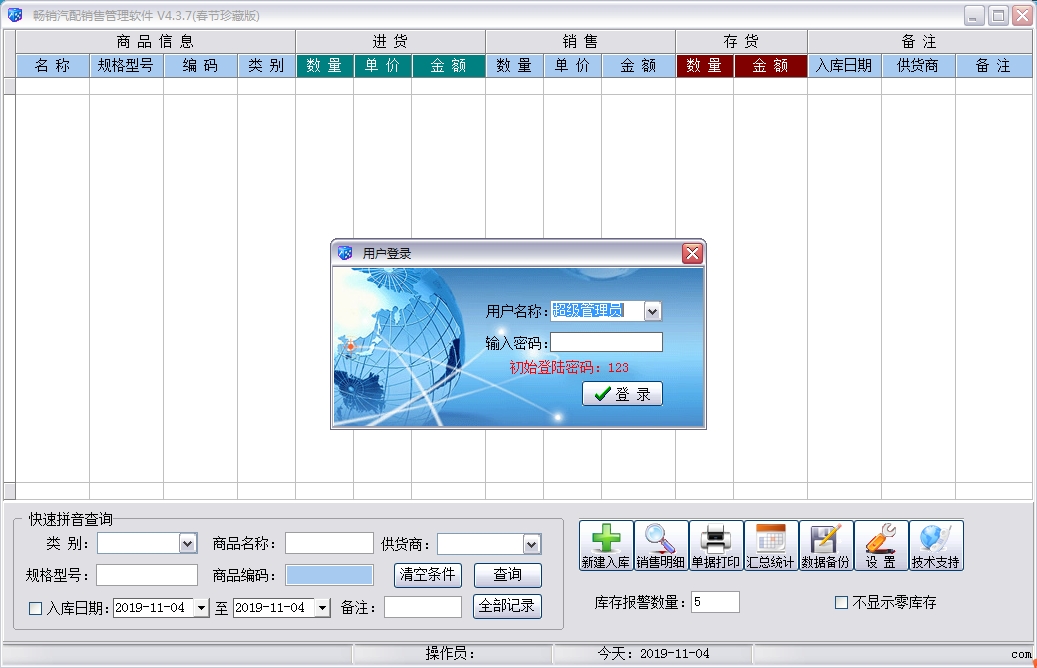 库存具有自动报警功能,报警数量自行设置;