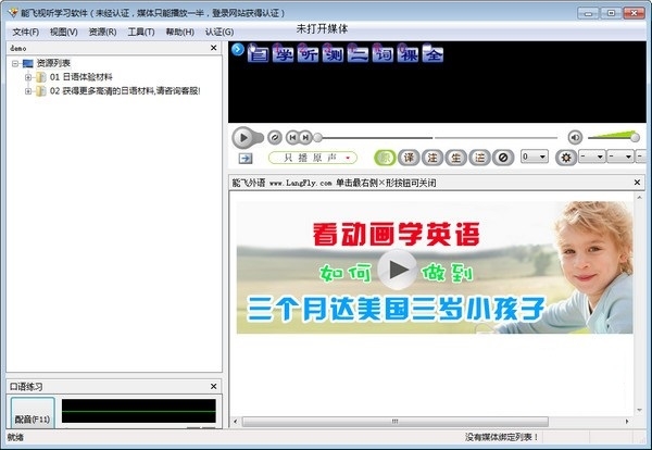 2、进入软件以后会提示您打开本地的媒体学习英文
