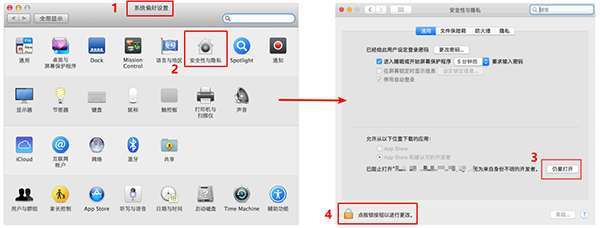 MacOS 10.15 系统下,如提示“无法启动”,请在系统偏好设置-安全性与隐私-选择【仍要打开】,即可使用。
