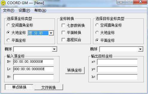 COORD GM是一款小巧实用的坐标转换工具,主要用于进行各个球面坐标和平面坐标之间的转换。软件支持任意点位的信息查询,支持文件格式,同一椭球的直角坐标、地理坐标和平面坐标相互转换,操作非常简单。