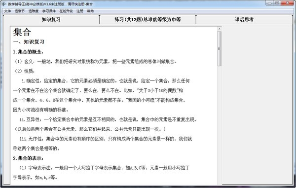 数学辅导王官方版是一款安全稳定、快捷方便的数学学习软件,数学辅导王最新版拥有中学生必学数学课程内容,还可以进行课后知识点延伸学习。数学辅导王既能让学有困难的学生补习所学知识,逐步提高数学解题水平。也能让优秀的学生拓宽视野,掌握解决问题的方法,提高数学能力。软件最大特点是可以根据学生的数学水平自动调节练习难度,就象一个优秀的家庭教师。
